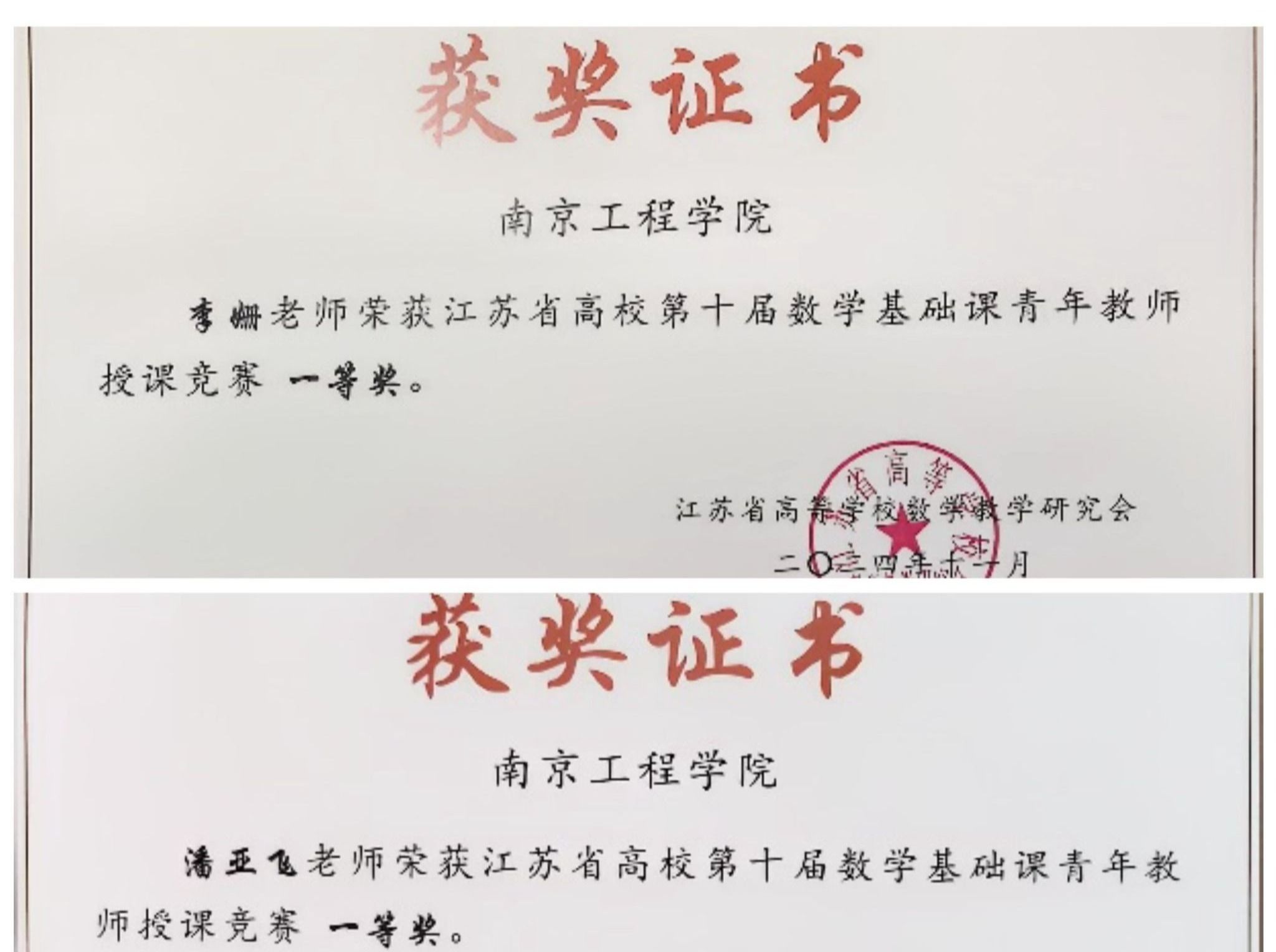 我校教师在江苏省高校第十届数学基础课青年教师授课竞赛中获得佳绩