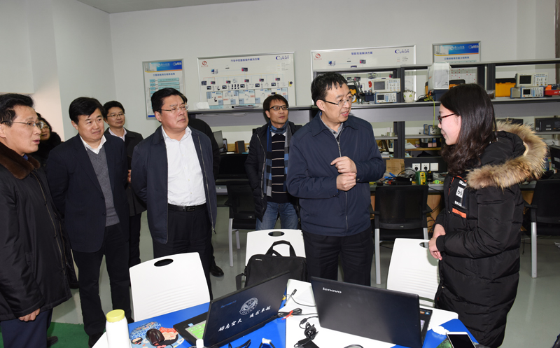 葛书记一行在史国君书记、孙玉坤院长的陪同下参观了工业中心、创新学院、智能电网研究院以及“天印梦工场”众创空间。每到一处,葛书记都亲切询问学生在校学习生活、创新创业情况,特别关心他们目前的专业学习和将来的就业选择等,他勉励学生学好专业知识,勇于实践、敢于创新,全面发展,努力成长为适应社会发展的高素质人才。
